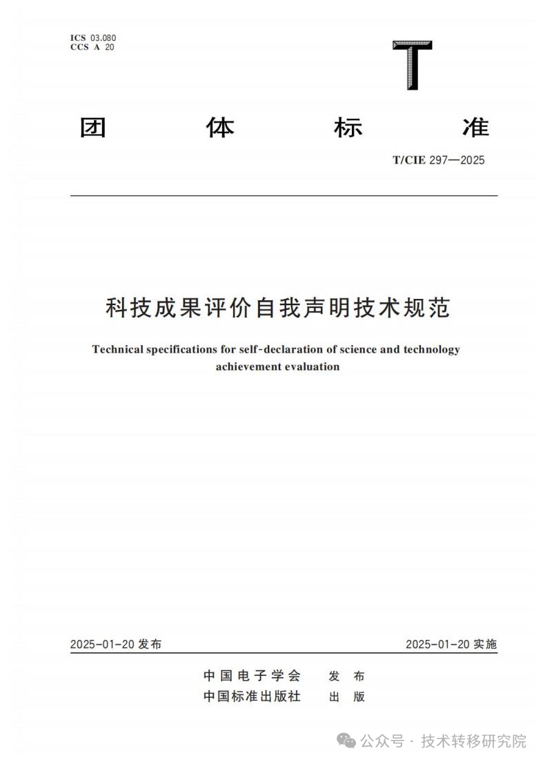 近日,我國科技成果評價領(lǐng)域自我聲明團體標準《科技成果評價自我聲明技術(shù)規(guī)范》(T/CIE 297 - 2025)正式發(fā)布。