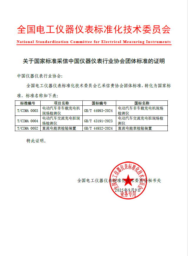 9月,全國電工儀器儀表標(biāo)準(zhǔn)化技術(shù)委員會給協(xié)會發(fā)來證明文件,協(xié)會的3項團(tuán)體標(biāo)準(zhǔn)已被國標(biāo)委采信,正式轉(zhuǎn)化為國家標(biāo)準(zhǔn)。