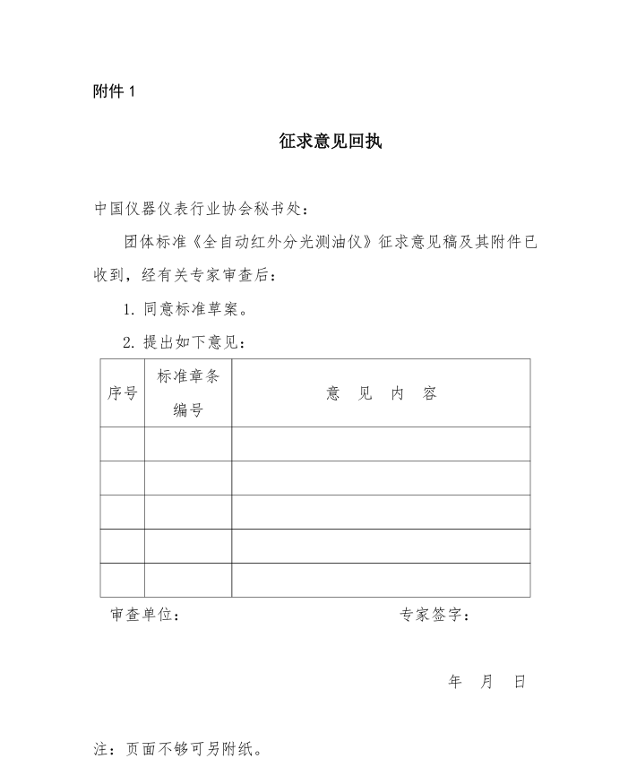 2.  征求意見回執—— 全自動紫外分光測油儀