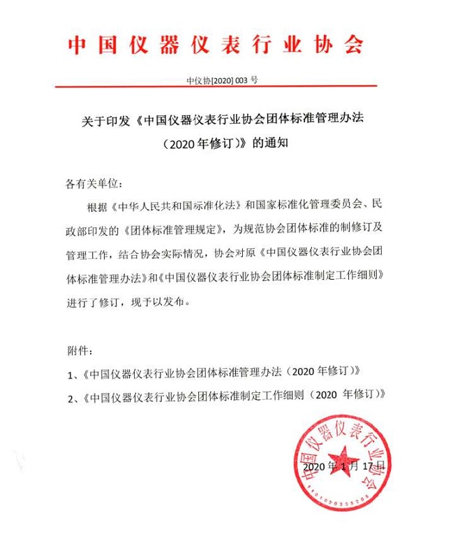 關(guān)于印發(fā)《中國儀器儀表行業(yè)協(xié)會(huì)團(tuán)體標(biāo)準(zhǔn)管理辦法(2020年修訂)》的通知