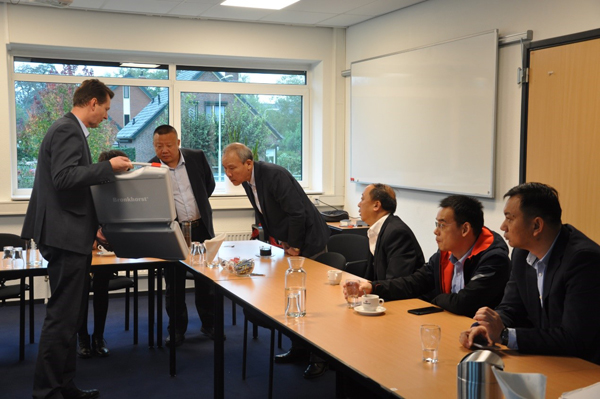 10月23日,代表團在恩斯赫德開始了第二天的行程。代表團一行拜訪了Alia儀器儀表公司和MESA+研究中心,參觀了Bronk horst公司。 Alia儀器公司是6年前從MESA+成功孵化的公司。其執行董事,Jan Peter 先生,熱情地向代表團成員介紹了其主要產品和業務。Alia公司研發和生產具有雙相和多相混合物測量能力的高精度無核密度傳感器和測量儀,為泥沙挖掘、采礦、隧道工程等工業領域提供質量穩定可靠,且具有可持續性的高精度產品。其產品在歐洲已經得到市場認可,業績逐年上升。現在Alia正將目光投向容量巨大的中國市場,Peter先生表達了與中國公司進行合作的強烈愿望。