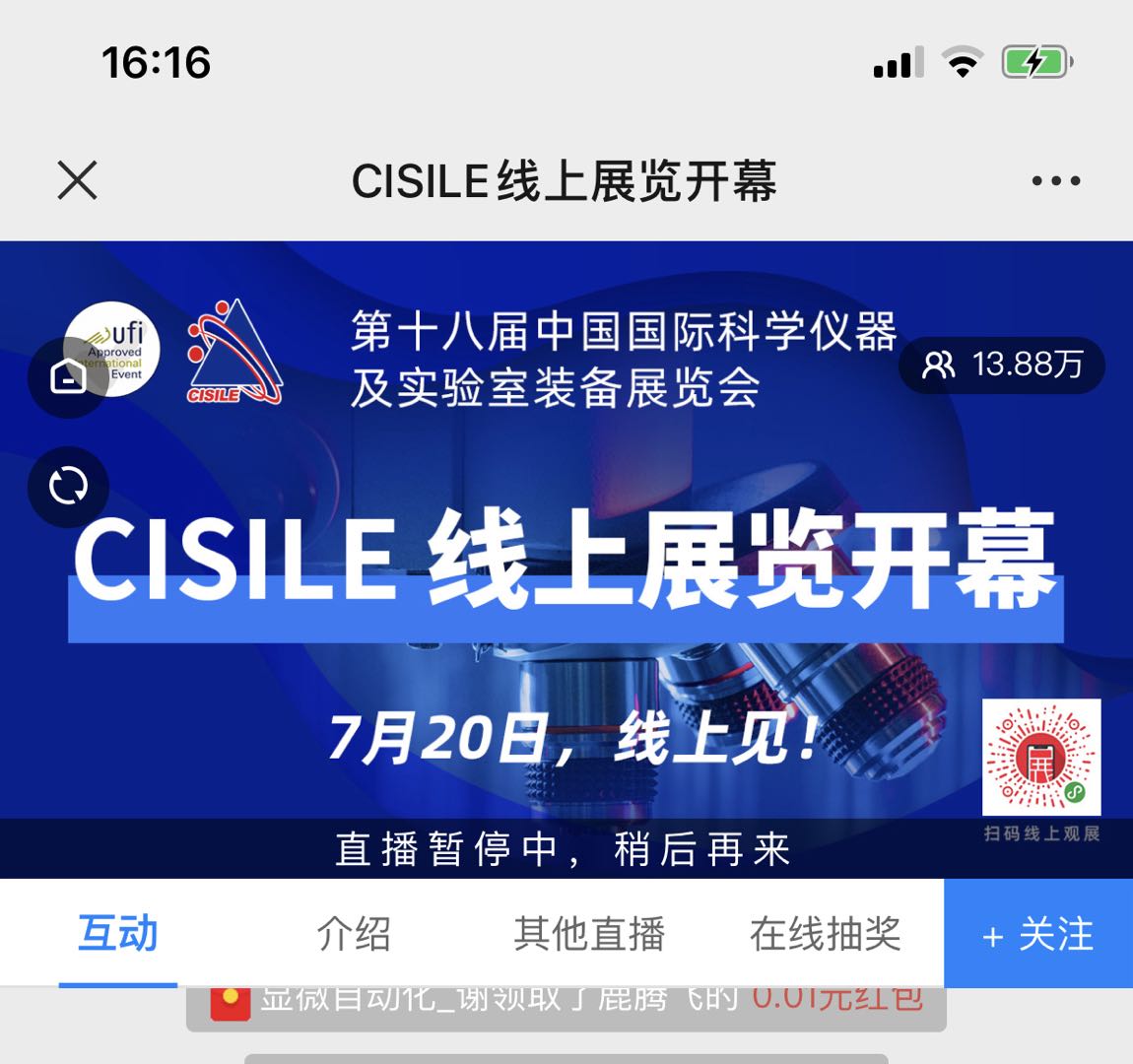 截至202072014:00,線上直播活動CISILE官方直播入口觀看人次超過11萬,未計入中國化工儀器網、分析測試百科網的轉播觀看人次。