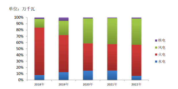 圖2:近五年水、火、風、核電設備產量占比變化趨勢圖