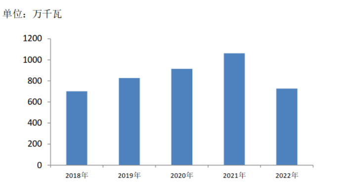 2022年,全國風電機組產量5703.8萬千瓦,同比增長1.9%。其中單機容量3-7MW(不含7MW)機組約占風電機組產量的85%。陸上風電機組大型化引領全球,6MW機組成為主流機型,并先后下線了8MW、9MW、10MW陸上機組;海上風電機組迭代速度加快,10MW機組成為主流機型,16MW機組下線,海上風電機組步入“超大”時代。