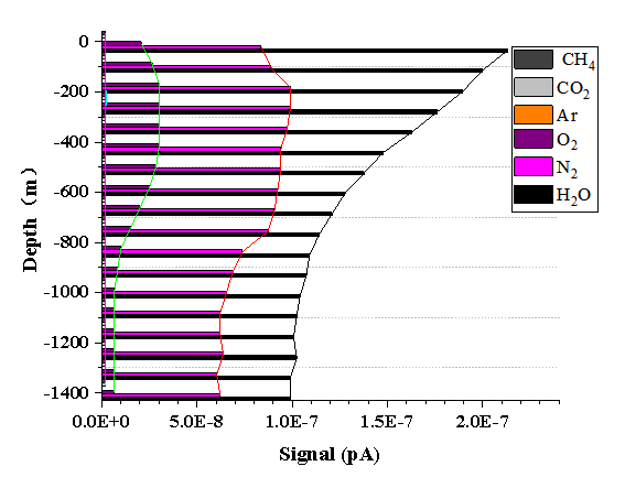 ↑ 深海溶解氣在線檢測深度-峰高關系曲線