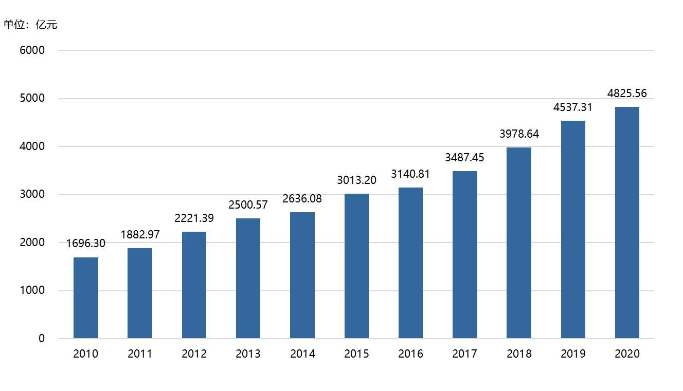 圖3 中國(guó)政府研發(fā)經(jīng)費(fèi)支出規(guī)模增長(zhǎng)趨勢(shì)(2010-2020年)