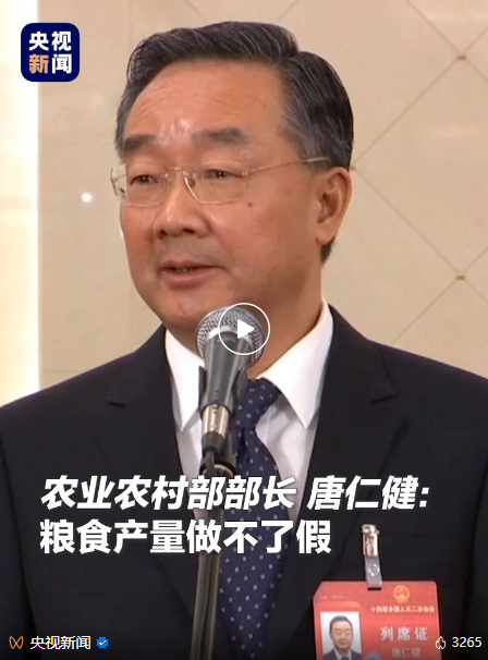 針對一些對糧食產量的質疑聲音,唐仁健表示,目前我國農業的裝備條件、抗災能力、生產經營組織方式與往年已不可同日而語。此外,糧食是剛需品,只要供應量少了,市場和價格一定會反映出來,我國糧食產量是真實可靠的。