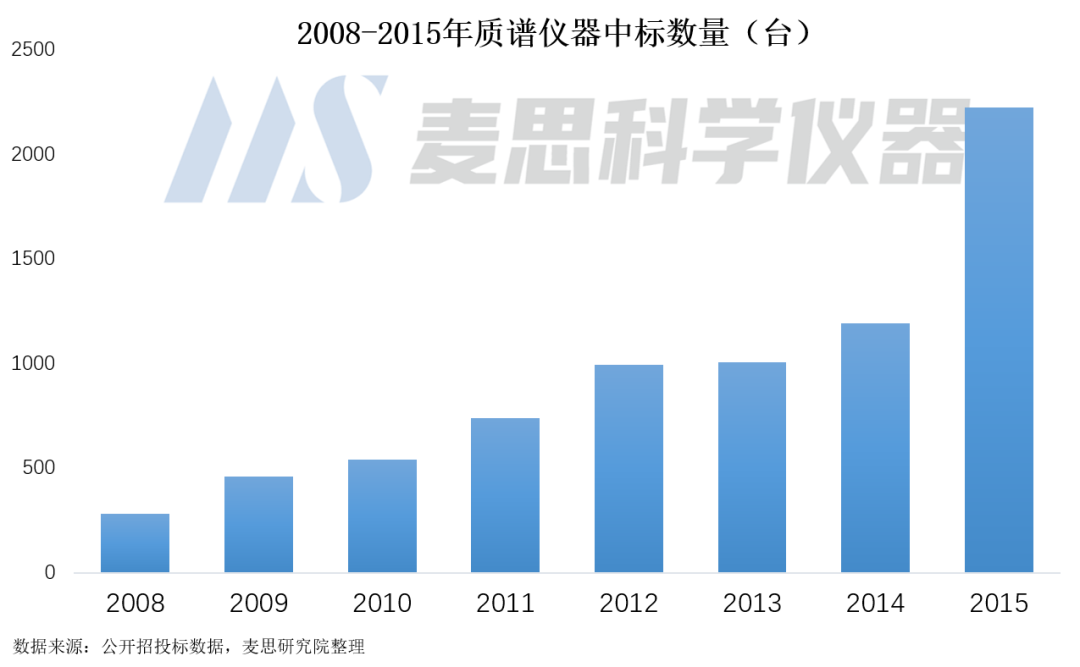 為了深入挖掘質(zhì)譜儀器的真正潛在需求,麥思研究院對2008-2015年公開招投標數(shù)據(jù)進行了詳細分析。