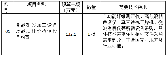 項(xiàng)目名稱:食品研發(fā)加工設(shè)備及品質(zhì)評價(jià)檢測設(shè)備購置