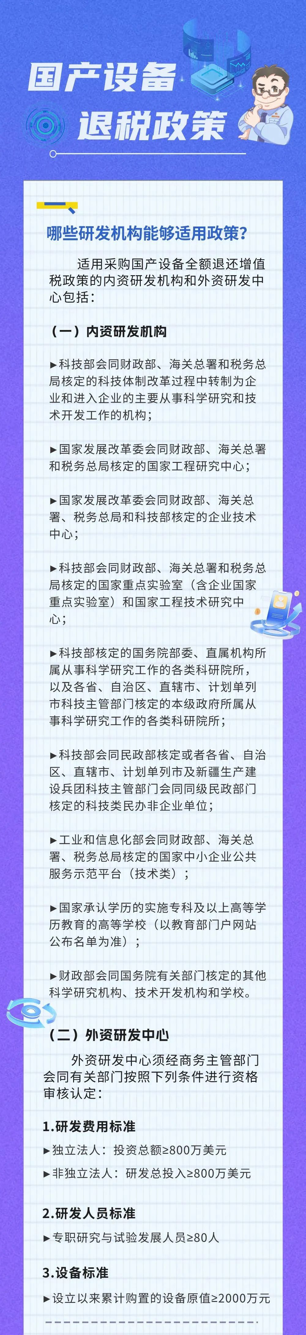 日前,財(cái)政部、商務(wù)部、稅務(wù)總局三部委聯(lián)合發(fā)文《關(guān)于研發(fā)機(jī)構(gòu)采購設(shè)備增值稅政策的公告》明確指出內(nèi)資研發(fā)機(jī)構(gòu)和外資研發(fā)中心采購國產(chǎn)設(shè)備全額退還增值稅。也就是說只要是研發(fā)中心,采購國產(chǎn)設(shè)備,一律退回增值稅!國家在用真金白銀補(bǔ)貼國產(chǎn)設(shè)備!其中,哪些研發(fā)機(jī)構(gòu)能夠適用政策?哪些國產(chǎn)設(shè)備能夠退還增值稅?享受退稅政策需要做哪些準(zhǔn)備?...今天,小編帶您看看具體內(nèi)容~↓↓↓