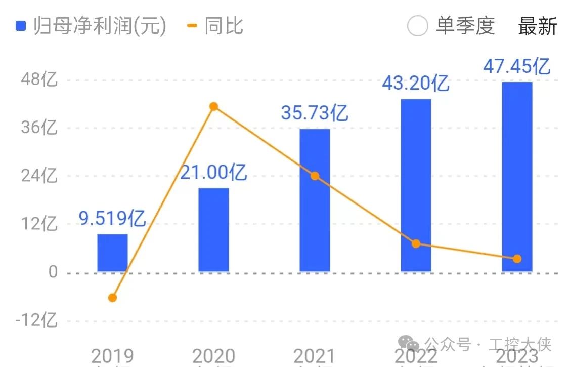 匯川,23財年凈利潤47億元,研發(fā)投入20億元。