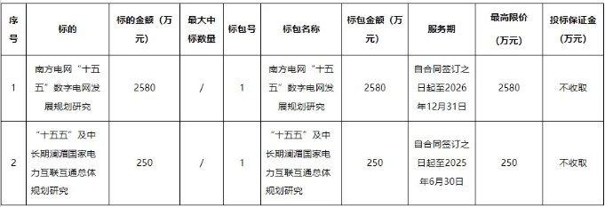 南方電網(wǎng)公司“十五五”電網(wǎng)規(guī)劃專題公開招標(biāo)項目