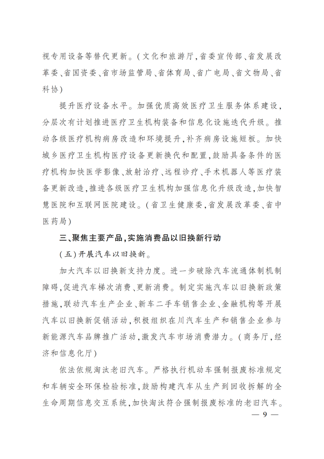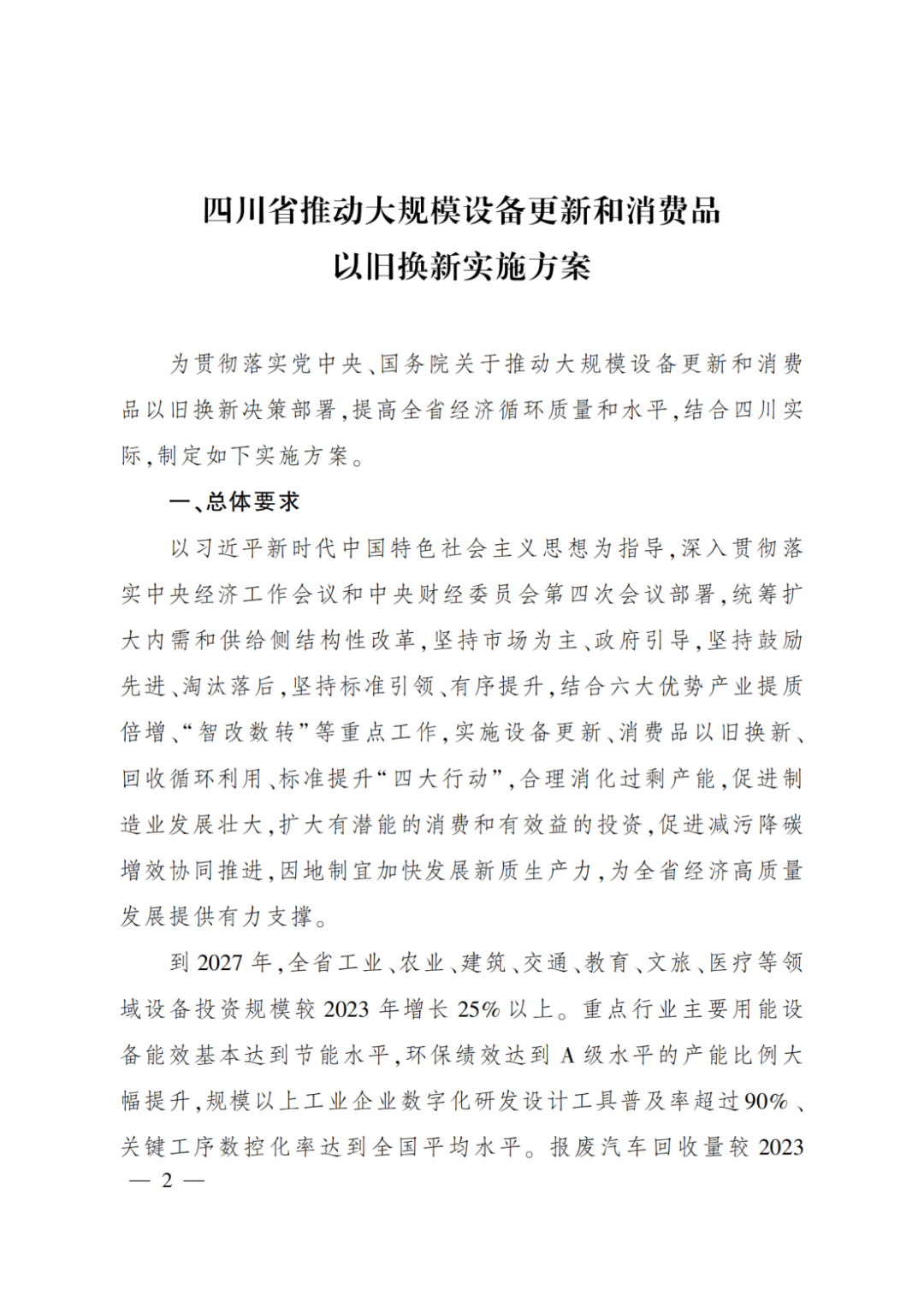 511日四川省人民政府網站發布關于印發《四川省推動大規模設備更新和消費品以舊換新實施方案》的通知。
