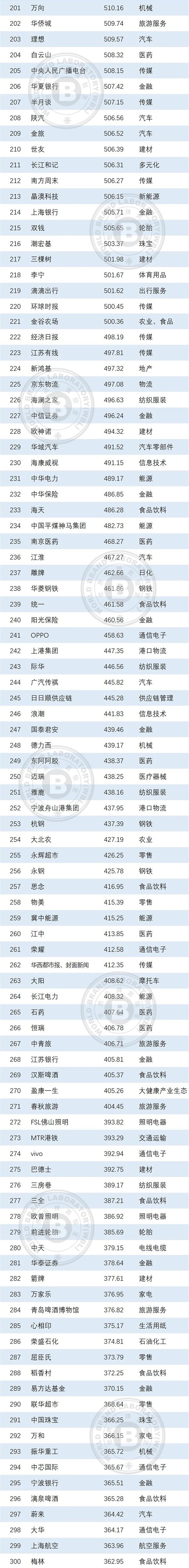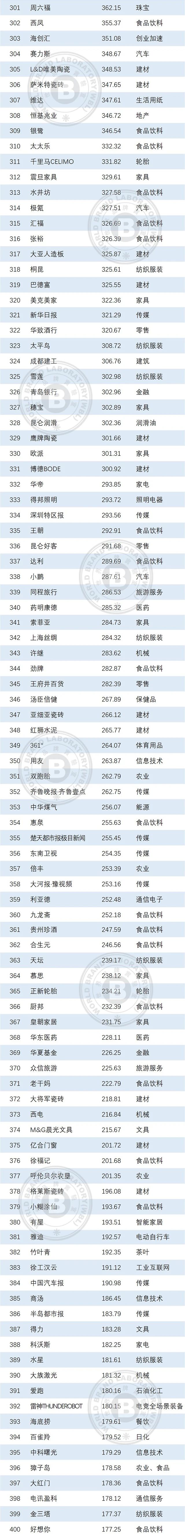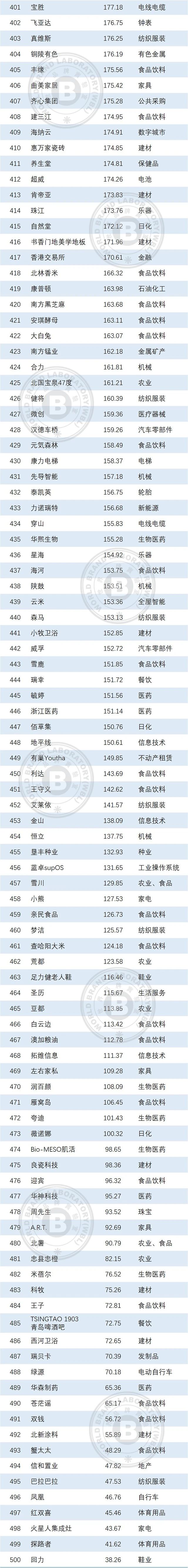 本年度《中國500最具價值品牌》排行榜中,共有來自食品飲料、輕工業、建材、傳媒、紡織服裝、醫藥、機械等在內的24個相關行業的品牌入選。其中食品飲料業依然是入選品牌最多的行業,共有80個品牌入選,占總入選品牌數的16.00%;入選數量位居第二到第五的行業分別是輕工(41)、通信電子IT(39)、建材(36)、傳媒(32)。在衡量品牌的忠誠度時,世界品牌實驗室參考了我信品牌(iTrust Rating)的評級數據;在衡量品牌的領導力特別是ESG(環境、社會和治理)評分時,參考了超級財經(SuperFinance)ESG數據庫。同時還借用了低碳國際(Carboncare International)對品牌企業碳排放的計量,以推動品牌添加碳排放評分標簽。