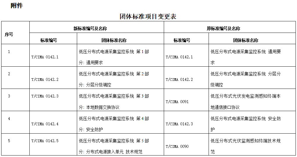根據電工儀器儀表分會提交的《關于將系列團體標準<低壓分布式電源采集監控系統>重新編號、修改名稱的申請》,經研究,該申請符合協會團體標準管理辦法及細則,修改后有利于完整體現編制目的,有利于滿足標準使用者的不同需求,同意重新編號和修改名稱。