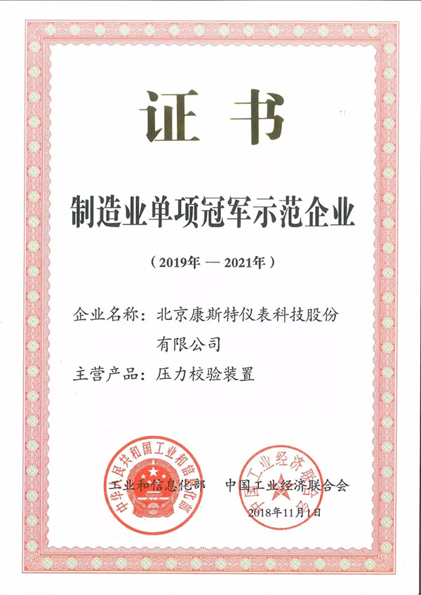 2018年12月18日,工業(yè)和信息化部、中國(guó)工業(yè)經(jīng)濟(jì)聯(lián)合會(huì)在京組織召開了制造業(yè)單項(xiàng)冠軍經(jīng)驗(yàn)交流會(huì)。工業(yè)和信息化部原部長(zhǎng)、中國(guó)工業(yè)經(jīng)濟(jì)聯(lián)合會(huì)會(huì)長(zhǎng)李毅中,工業(yè)和信息化部副部長(zhǎng)王江平等出席了會(huì)議,并為制造業(yè)單項(xiàng)冠軍企業(yè)頒發(fā)了證書。