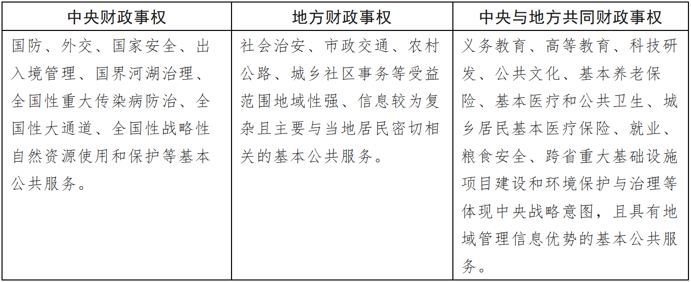 表1:中央與地方財政事權(quán)和支出責任劃分(2016)