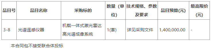 合同包3(機載一體式激光雷達高光譜成像系統(tǒng)):