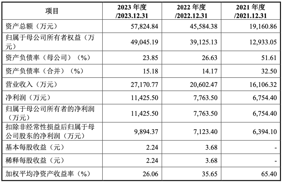 2021年—2023年(下稱“報(bào)告期”),公司營業(yè)收入分別為16106.32萬元、20602.47萬元和27170.77萬元。