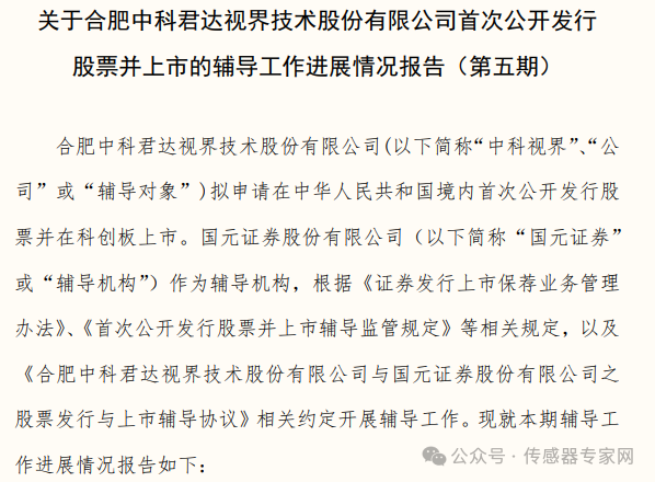 2023年3月,中科視界與國元證券簽署上市輔導協議,截止2024年7月9日,已完成第五期上市輔導工作。