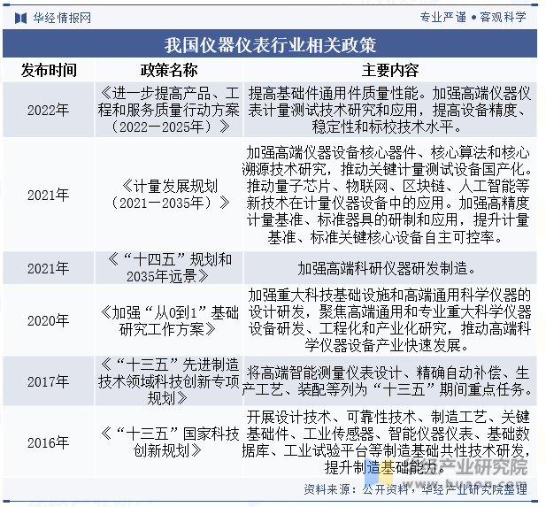 二、儀器儀表行業(yè)相關政策