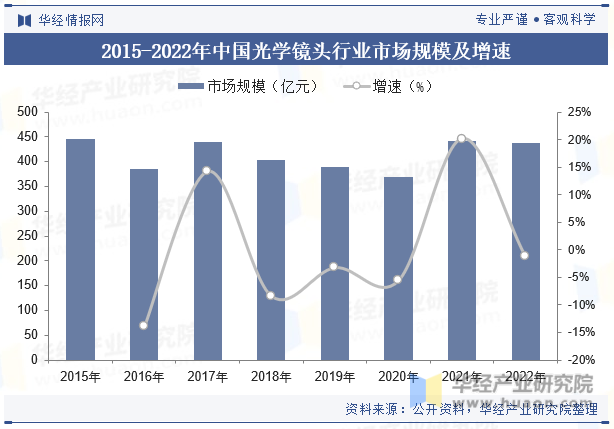 鏡頭是光學儀器的核心部件,20世紀以來光電子技術的快速發(fā)展帶動光學鏡頭的應用范圍從最初的顯微鏡、望遠鏡、膠片相機等領域向安防視頻監(jiān)控、數(shù)碼相機/攝像機和智能手機等領域滲透。數(shù)據(jù)顯示,2022年我國光學鏡頭行業(yè)市場規(guī)模約為437.49億元,同比減少1.16%。