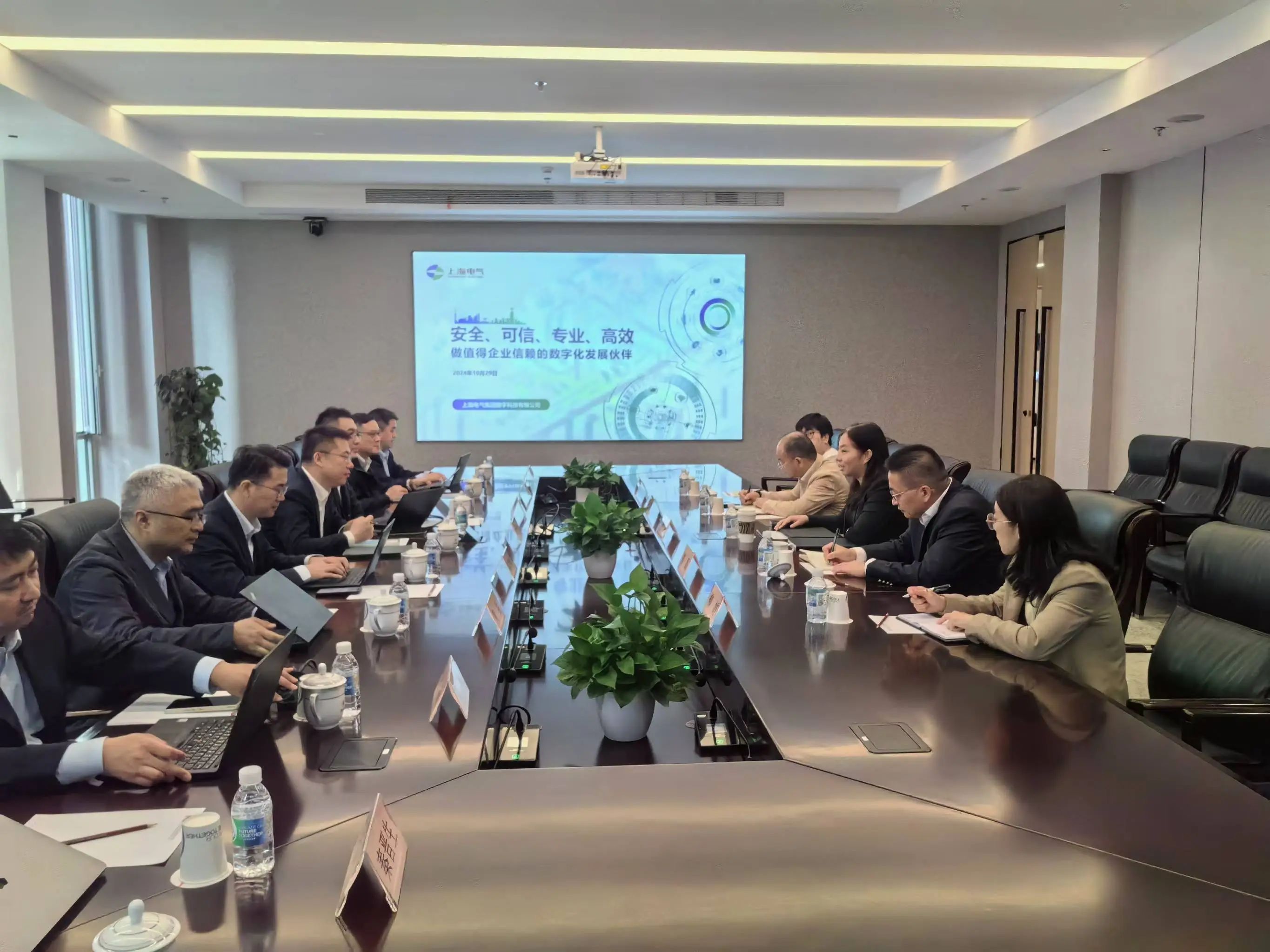 10月29日,上海電氣集團數(shù)字科技有限公司(簡稱:電氣數(shù)科)黨總支書記、副總經(jīng)理侯智斌率隊到訪上海自儀,公司黨委書記、董事長程艷,黨委副書記、總經(jīng)理高磊,總經(jīng)理助理朱強出席交流會。雙方在技術(shù)研發(fā)和創(chuàng)新方面探討協(xié)同發(fā)展新思路。與會領(lǐng)導(dǎo)分別介紹了企業(yè)的基本情況和發(fā)展規(guī)劃,就合作項目的進(jìn)展情況進(jìn)行了溝通和交流。雙方表示,未來將各自發(fā)揮軟、硬件方面的優(yōu)勢和經(jīng)驗,響應(yīng)國家戰(zhàn)略,聚焦行業(yè)共性需求,在智慧電廠、流程工業(yè)自動化、工控安全等領(lǐng)域協(xié)同研發(fā)和創(chuàng)新,實現(xiàn)優(yōu)勢互補,共同發(fā)展,攜手提升在行業(yè)中的核心競爭力。