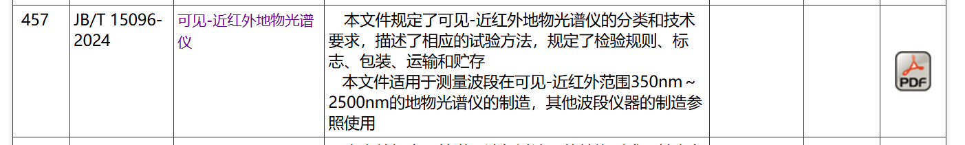 《可見-近紅外地物光譜儀》規(guī)定了可見-近紅外地物光譜儀的分類和技術(shù)要求。還對檢驗規(guī)則、標(biāo)志、包裝、運輸和貯存等環(huán)節(jié)作出了詳細(xì)規(guī)定,為產(chǎn)品制造和質(zhì)量控制提供了完整的指導(dǎo)體系。