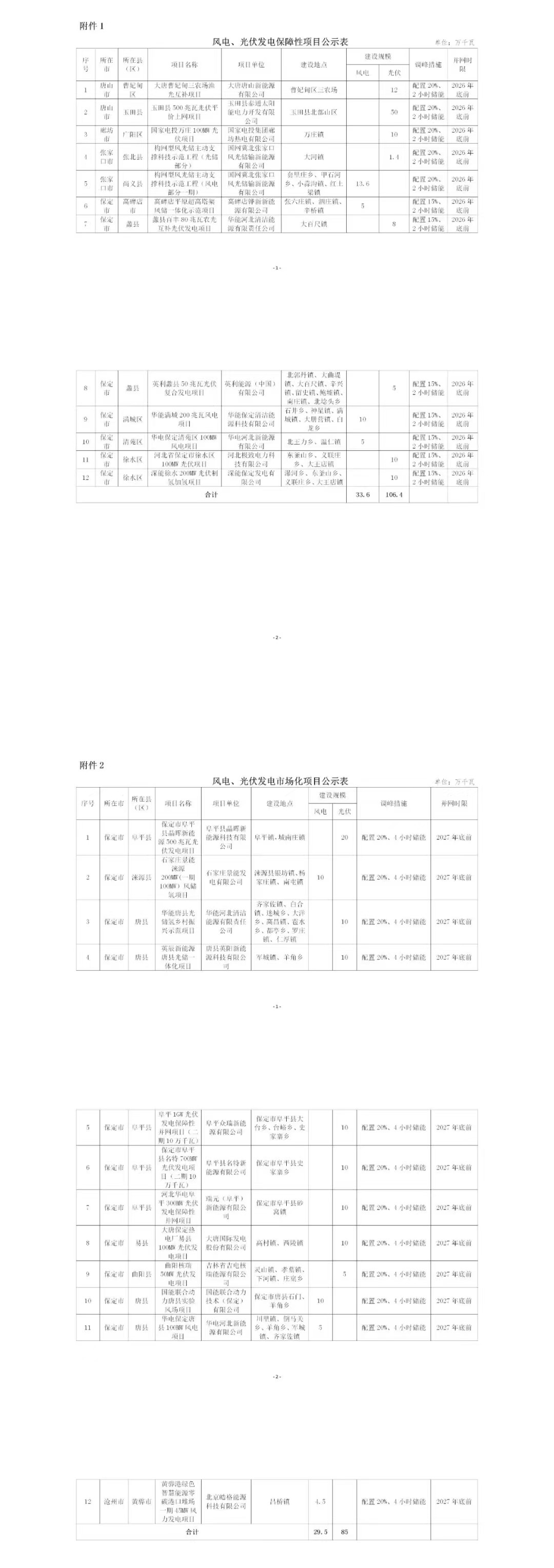 第二批:24個、2.5GW納入第二批的項(xiàng)目共25個,總規(guī)模259.5萬千瓦,其中保障性項(xiàng)目共13個、145萬千瓦,市場化項(xiàng)目共12個、114.5萬千瓦。根據(jù)調(diào)峰措施方面,保障性規(guī)模的配儲比例在15-20%/2小時,而市場化項(xiàng)目配儲比例大多為20%/4小時。第二批次獲得容量的項(xiàng)目業(yè)主中,唐山海泰新能源獲得規(guī)模最大,為500MW風(fēng)電項(xiàng)目,另外華能(280MW,含100MW風(fēng)電)、華電(250MW,含150MW風(fēng)電)、大唐(220MW,含120MW風(fēng)電)。國家電網(wǎng)(含136MW風(fēng)電)和國家電投(全部為光伏)各獲得150MW項(xiàng)目。