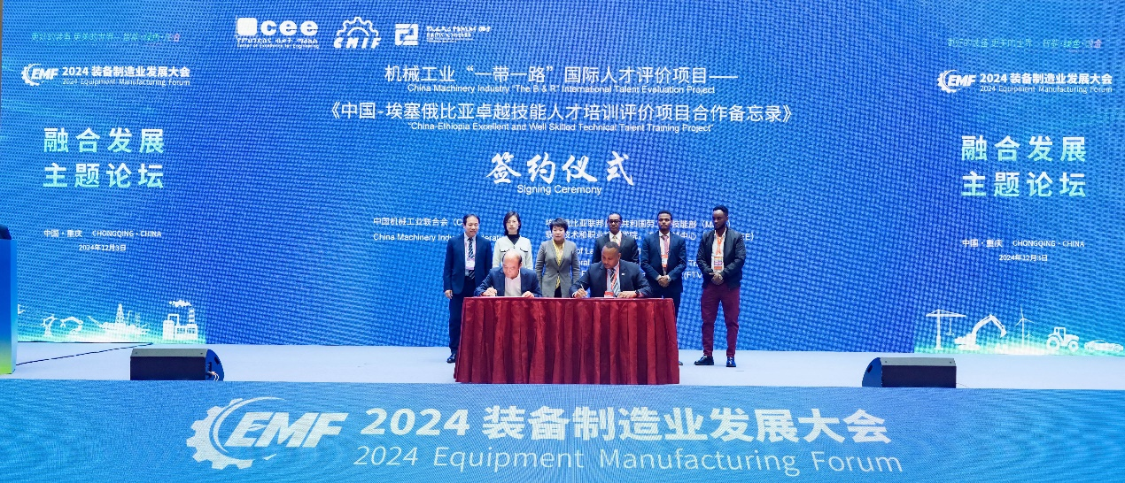 在成果發布環節,中國機械工業聯合會副會長李奇與埃塞俄比亞勞工與技能部工程卓越中心主任韓士蘭博士攜手登臺,共同簽署了《機械工業“一帶一路”國際人才評價項目——中國-埃塞俄比亞卓越技能人才培訓評價項目合作備忘錄》。這不僅標志著中埃兩國在機械工業領域人才培養與評價合作上邁出了堅實的一步,也譜寫了“一帶一路”倡議下國際技能合作的新篇章。