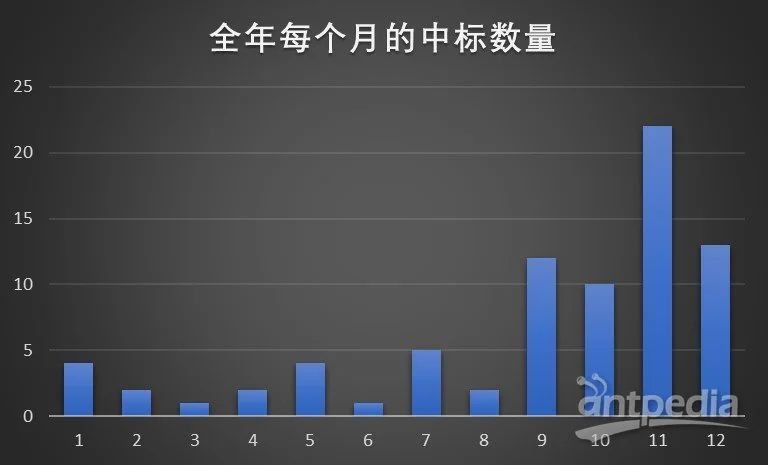 根據表格顯示可見,全年整體采購數量主要在9月份之后,這一現象的原因可能與各機構和企業在年末進行年度預算結算和設備采購計劃有關。