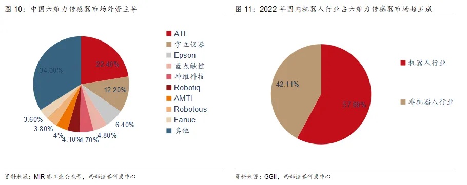 據(jù)此前MIR睿工業(yè)《2024中國(guó)六維力傳感器市場(chǎng)報(bào)告》顯示,2023年中國(guó)六維力傳感器出貨量不足萬(wàn)臺(tái),出貨規(guī)模剛剛突破2億元,主要應(yīng)用于機(jī)器人、工業(yè)自動(dòng)化和汽車等行業(yè),其市場(chǎng)集中度較高,TOP10廠商占接近70%份額,國(guó)產(chǎn)宇立儀器、藍(lán)點(diǎn)觸控、坤維科技位列市場(chǎng)份額第二、四、五位。中國(guó)六維力傳感器市場(chǎng)仍為外資主導(dǎo)。