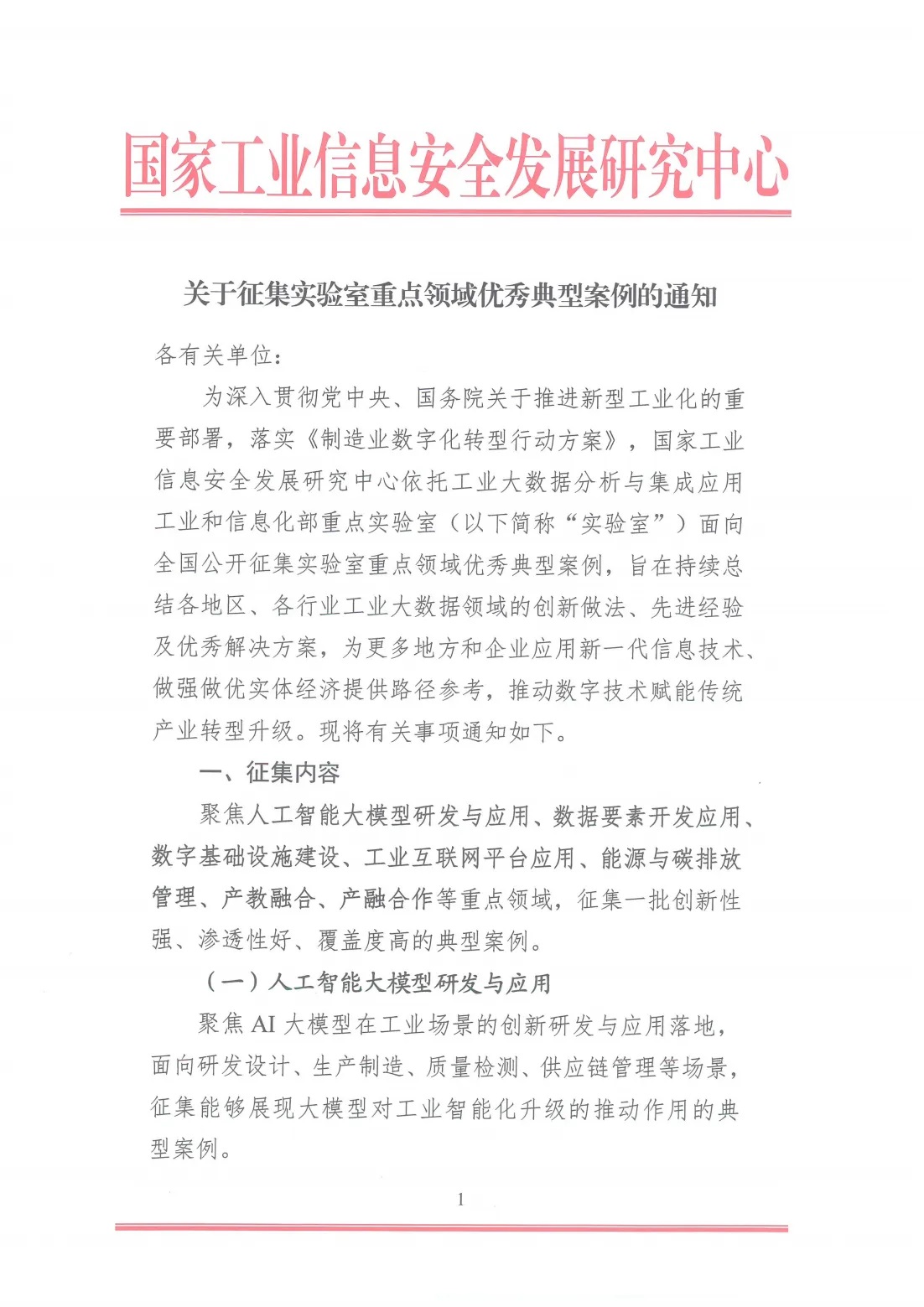 關(guān)于征集實驗室重點領(lǐng)域優(yōu)秀典型案例的通知