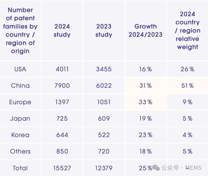 2024年,量子計算和量子通信領(lǐng)域的專利族占比明顯高于量子傳感,三者的占比分別為44%、42%和14%。從2023年~2024年的增長率來看,量子計算和量子通信領(lǐng)域的專利增長也顯著高于量子傳感領(lǐng)域,三者的增長率分別為37%、22%和3%。反映了當前全球量子技術(shù)領(lǐng)域的發(fā)展熱點和重點方向。