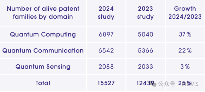 2023年和2024年全球量子技術(shù)專利族按技術(shù)類型細分的總量和增長率
