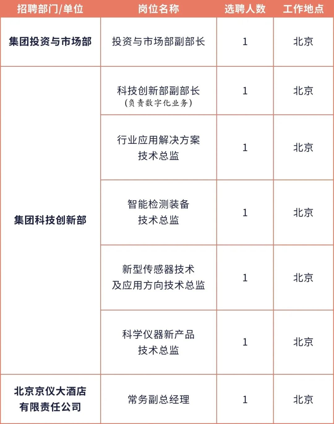 本次選聘崗位共7個(gè),其中京儀集團(tuán)總部崗位6個(gè),直屬企業(yè)崗位1個(gè)。