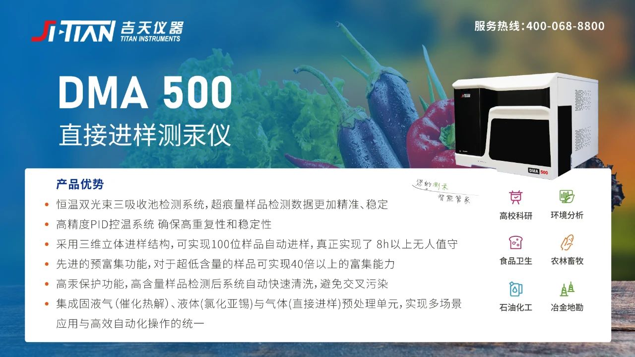DMA-500直接進樣測汞儀是吉天儀器自主研發(fā)的第二代直接進樣元素分析產(chǎn)品,適用于各類型固體、液體、氣體樣品中的汞含量分析檢測。吉天儀器突破關(guān)鍵技術(shù)壁壘,逐步打破核心部件對進口的依賴,產(chǎn)品國產(chǎn)化率超85%。