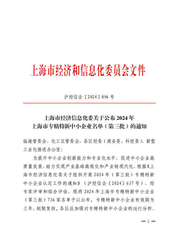 12月19日,上海市經濟信息化委公布2024年《上海市專精特新中小企業(yè)名單(第三批)的通知》,上海舜宇恒平科學儀器有限公司成功獲評“2024年上海市專精特新中小企業(yè)”稱號,科技創(chuàng)新能力、企業(yè)核心競爭力再度獲得權威認可。