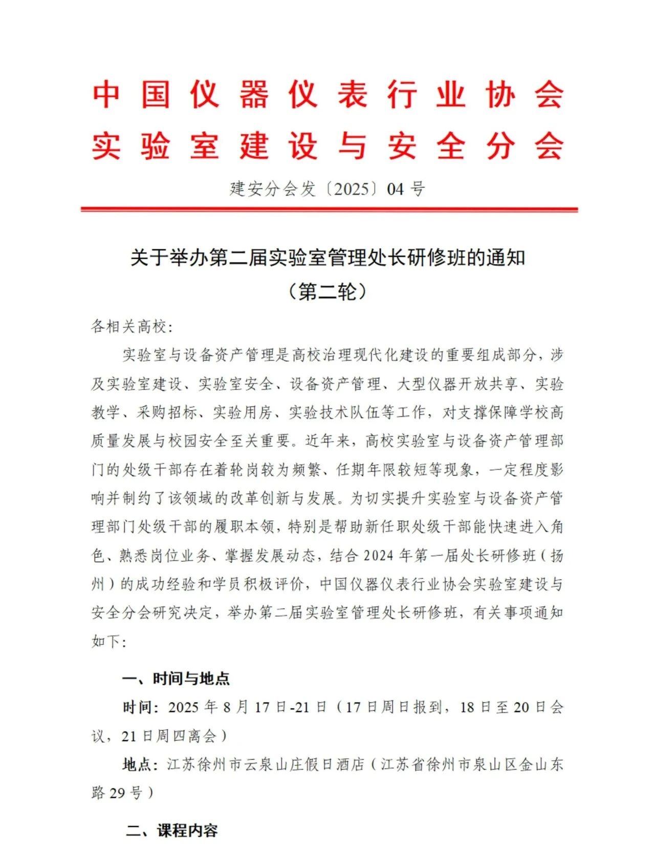 關(guān)于舉辦第二屆實驗室管理處長研修班的通知(第二輪)