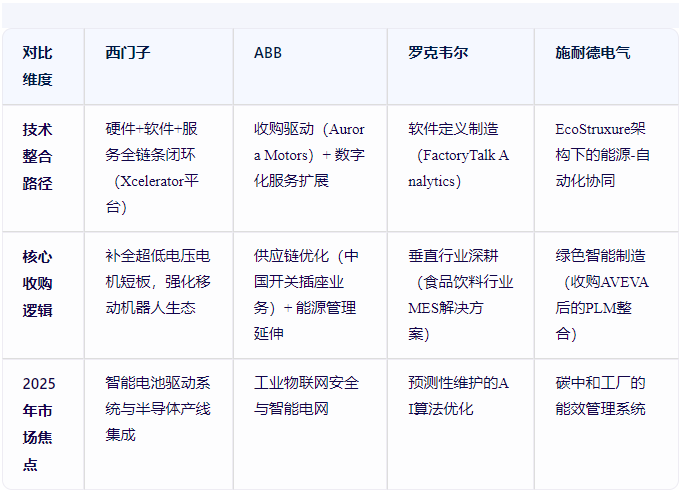 以ABB為例,其2024年收購(gòu)Sensorfact BV的能源管理SaaS平臺(tái),與西門(mén)子Safe Velocity安全解決方案形成直接競(jìng)爭(zhēng)。而羅克韋爾通過(guò)收購(gòu)MES廠(chǎng)商Plex Systems,構(gòu)建了覆蓋生產(chǎn)執(zhí)行到質(zhì)量管理的閉環(huán)系統(tǒng),與西門(mén)子Teamcenter PLM形成差異化。