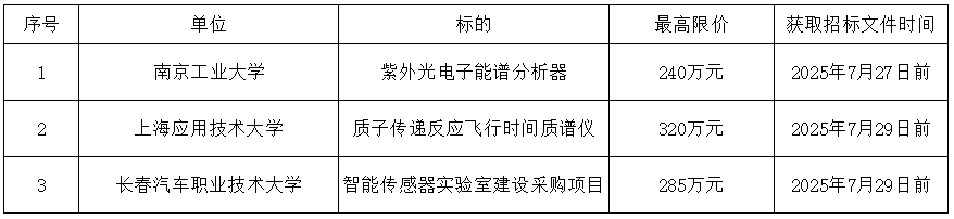 上海應用技術大學質子傳遞反應飛行時間質譜儀公開招標公告原文