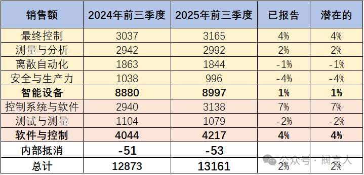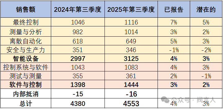 2025年度的第三季度,艾默生集團(tuán)凈銷售額為45.5億美元(合計(jì)人民幣378億元),相比去年同期增長4%,其中和閥門、執(zhí)行器、控制閥、定位器相關(guān)的最終控制板塊為11.2億美元(合計(jì)人民幣80億元),相比去年同期增長7%。