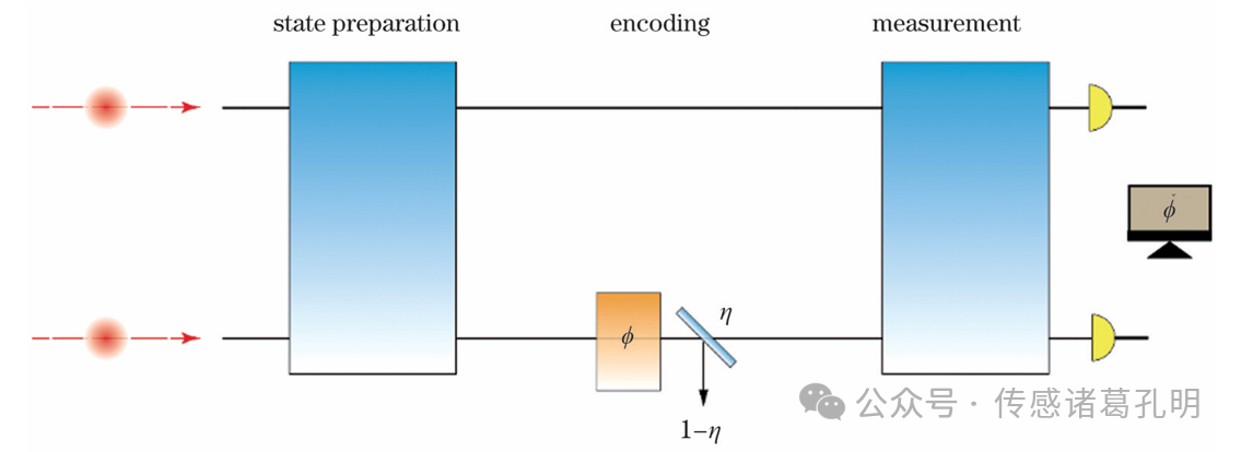 光學干涉儀是量子精密測量最典型的應(yīng)用平臺。其中馬赫-曾德爾干涉儀(MZI) 成為研究相位測量的標準模型(圖2)。