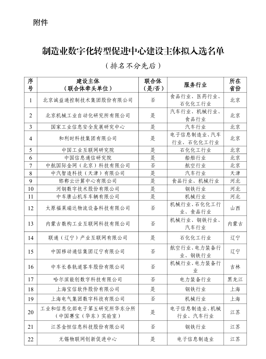 附件:制造業(yè)數(shù)字化轉(zhuǎn)型促進(jìn)中心建設(shè)主體擬入選名單