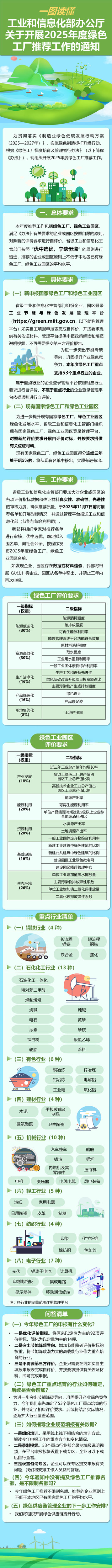為貫徹落實《制造業綠色低碳發展行動方案(20252027年)》,實施綠色制造標桿升級行動,根據《綠色工廠梯度培育及管理暫行辦法》(以下簡稱《辦法》),現組織開展2025年度綠色工廠推薦工作。有關事項通知如下: