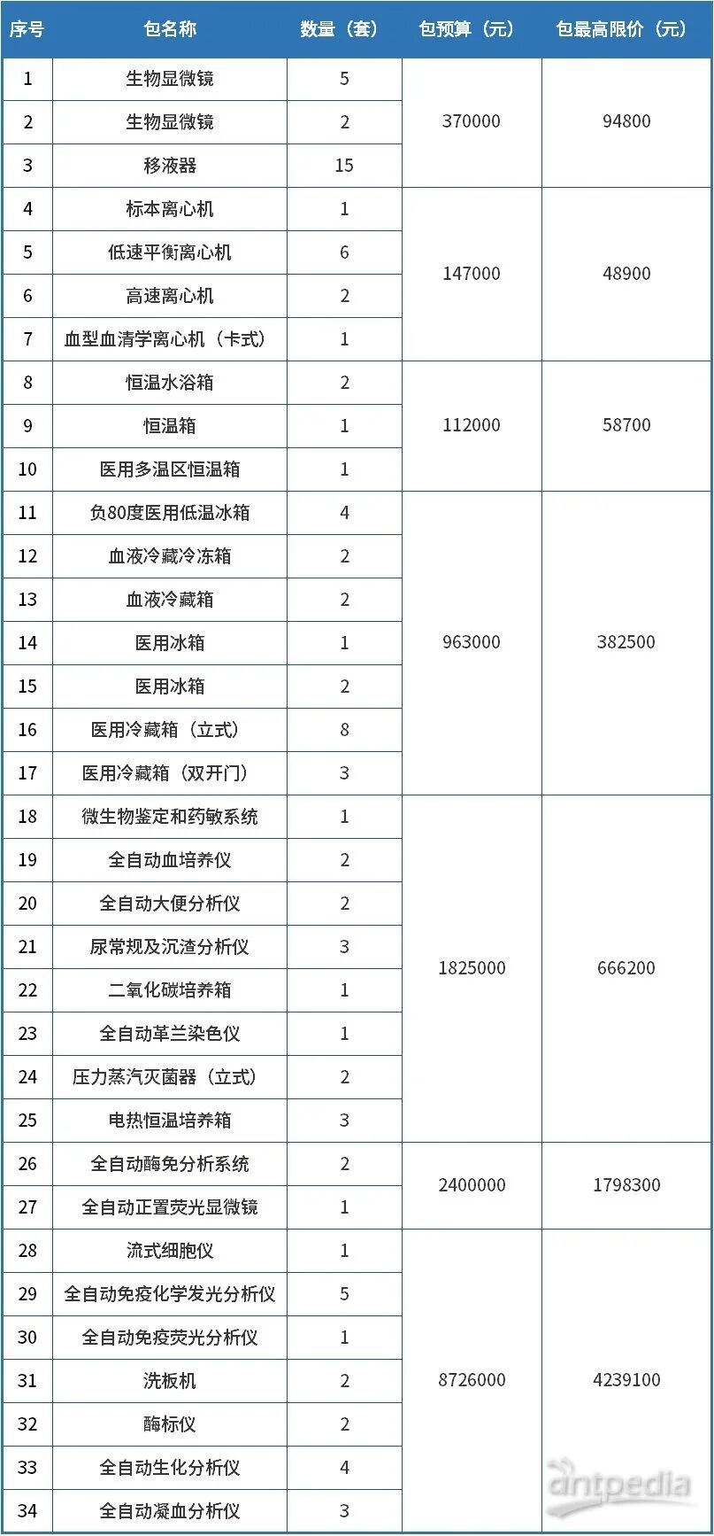 近日,鄭州市中心醫院國家創傷區域醫療中心公布多批次招標公告,其中集中招標采購一批實驗室分析檢測設備,主要包括生物顯微鏡、全自動正置熒光顯微鏡、流式細胞儀、酶標儀、洗板機、離心機、移液器等,這些設備預算總額為1454.3萬元。詳情如下: