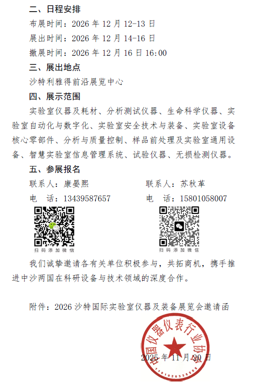關于邀請參加“2026 沙特國際實驗室儀器及裝備展