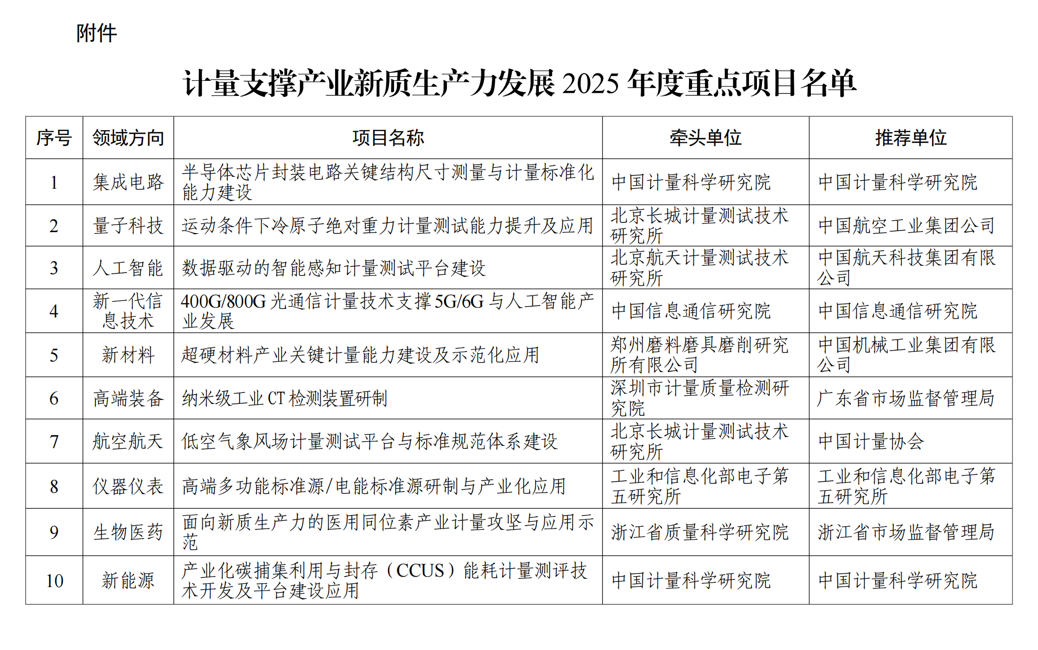 附件:計量支撐產業新質生產力發展2025年度重點項目名單