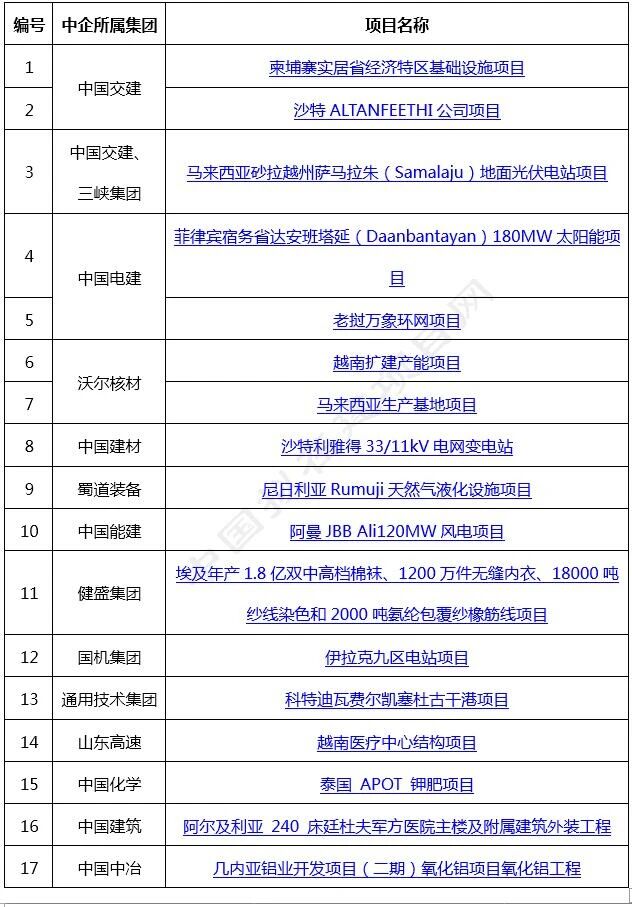 12月15日-19日新收錄中企簽約/中標(biāo)/公告海外項(xiàng)目匯總?cè)缦拢?/span>