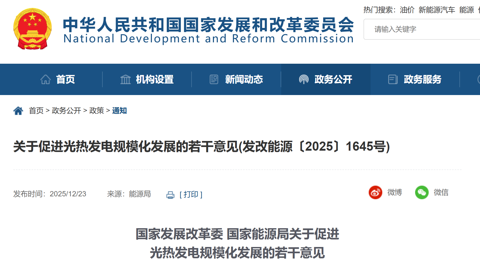 近日,國家發展改革委、國家能源局印發《關于促進光熱發電規模化發展的若干意見》(以下簡稱《意見》,政策原文參考附件)。國家能源局有關負責同志就《意見》接受采訪,回答了記者提問。